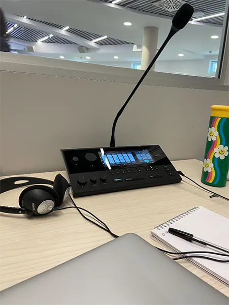 - Interpretación simultánea: Es la forma más común de interpretación utilizada en congresos y conferencias. El intérprete traduce el discurso del ponente al idioma de destino en tiempo real, utilizando elementos técnicos como auriculares y micrófono para transmitir el mensaje a aquellos asistentes que precisen de interpretación. Este tipo de servicio requiere una gran destreza cognitiva, ya que el intérprete debe escuchar, comprender, procesar y traducir al mismo tiempo.
